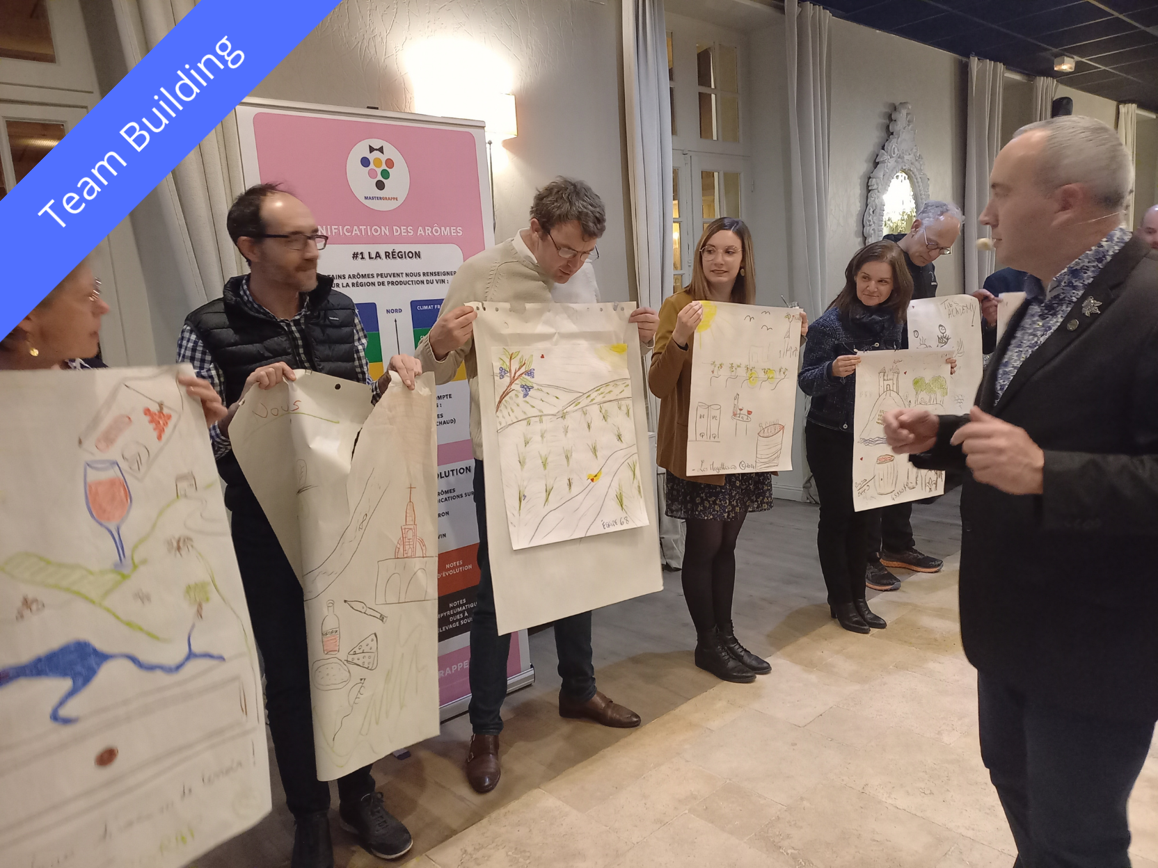 Un challenge ludique et sensoriel, orchestré par une équipe de sommeliers, où chaque participant trouve sa place. Par équipes, vos collaborateurs plongent dans l’univers du vin à travers des épreuves de dégustation, de culture et de créativité. Un moment fédérateur qui allie apprentissage, plaisir et cohésion.
